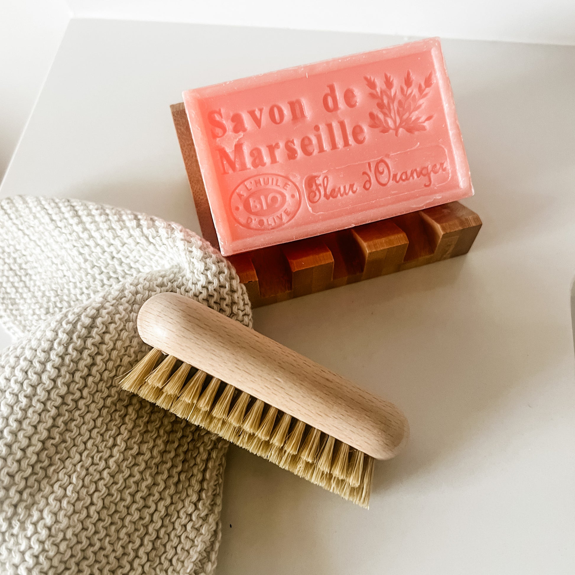 Made from 100% Bamboo. Clean with warm water and mild dish detergent when needed. Let air dry.
