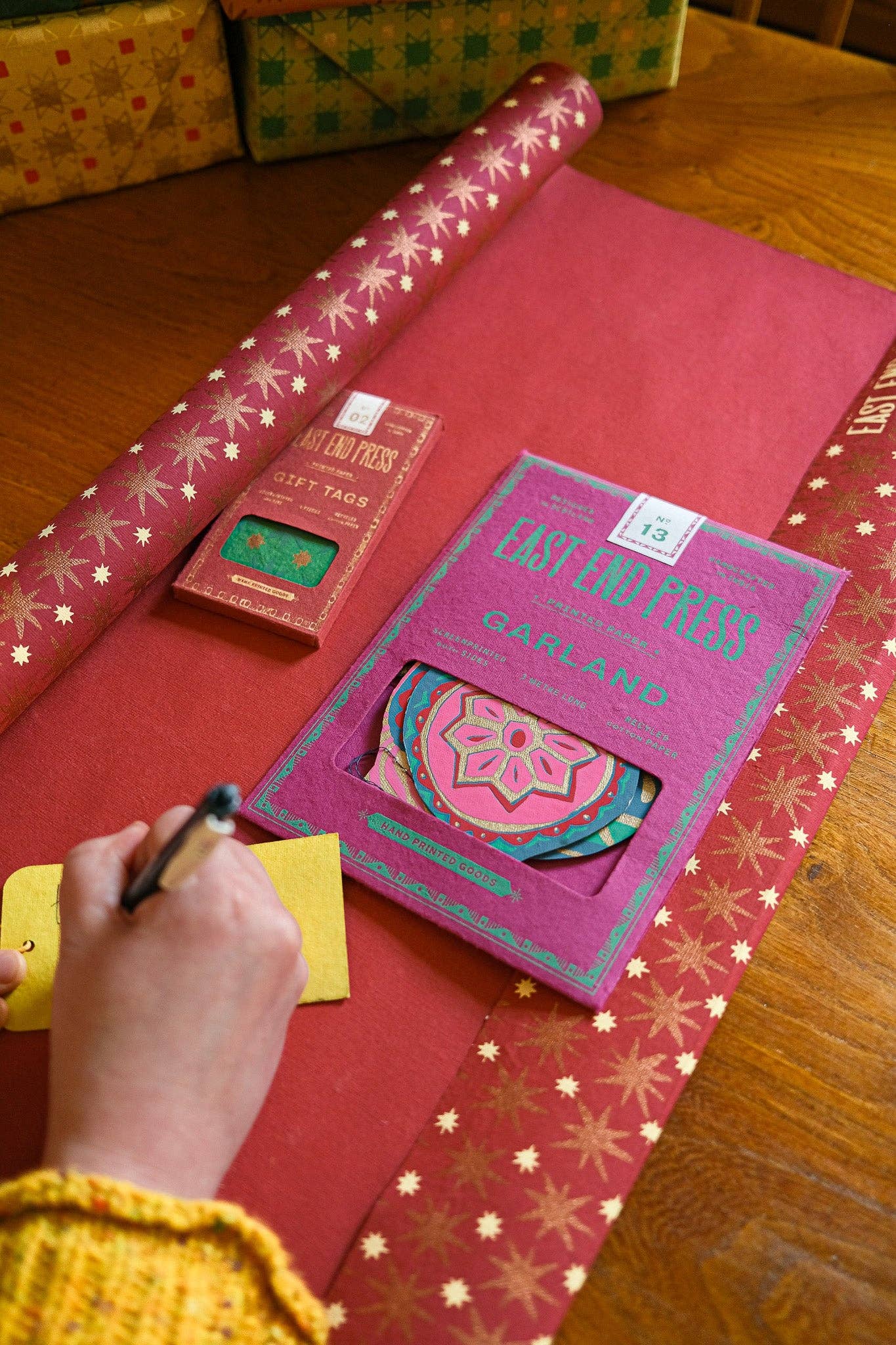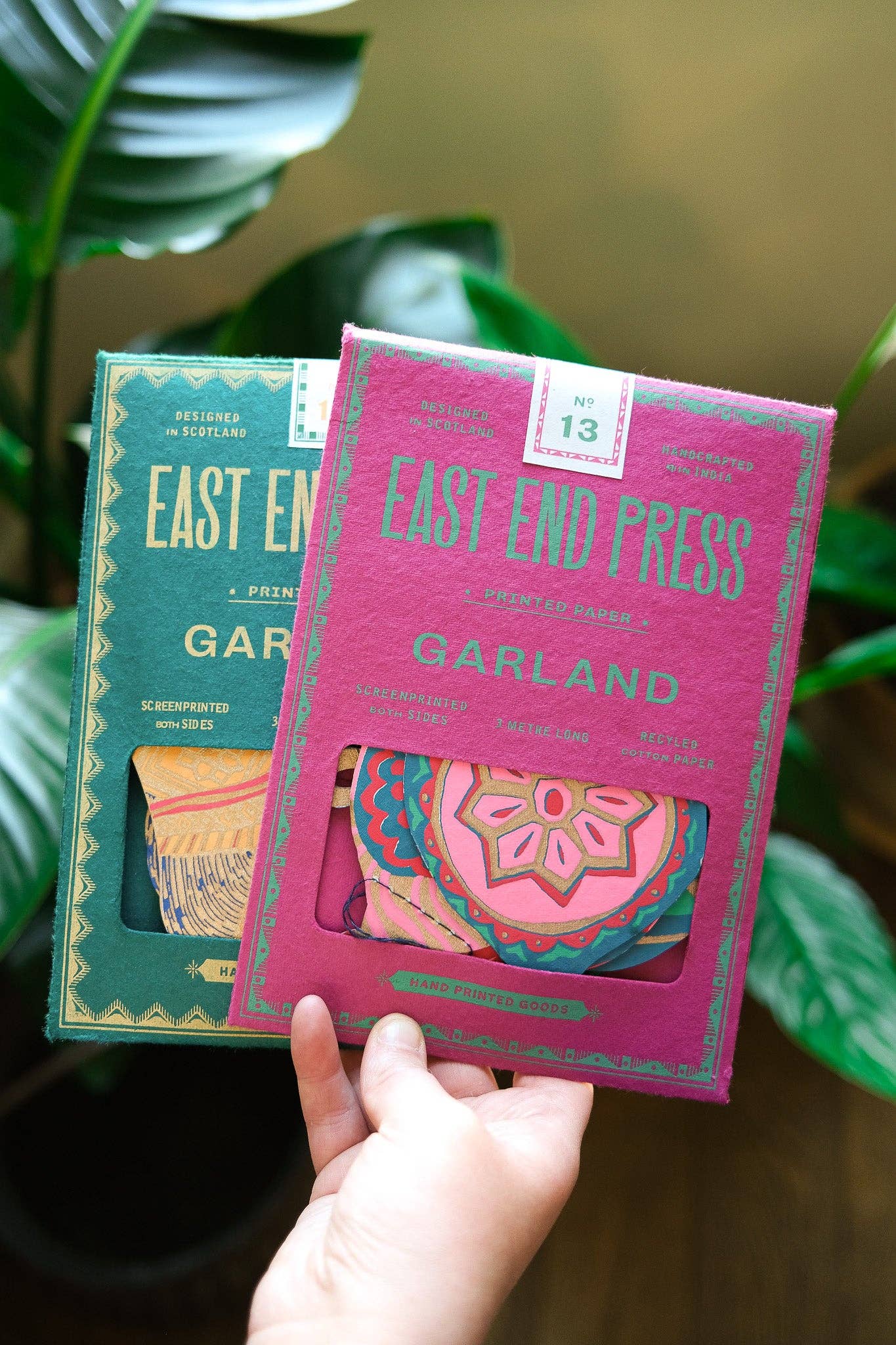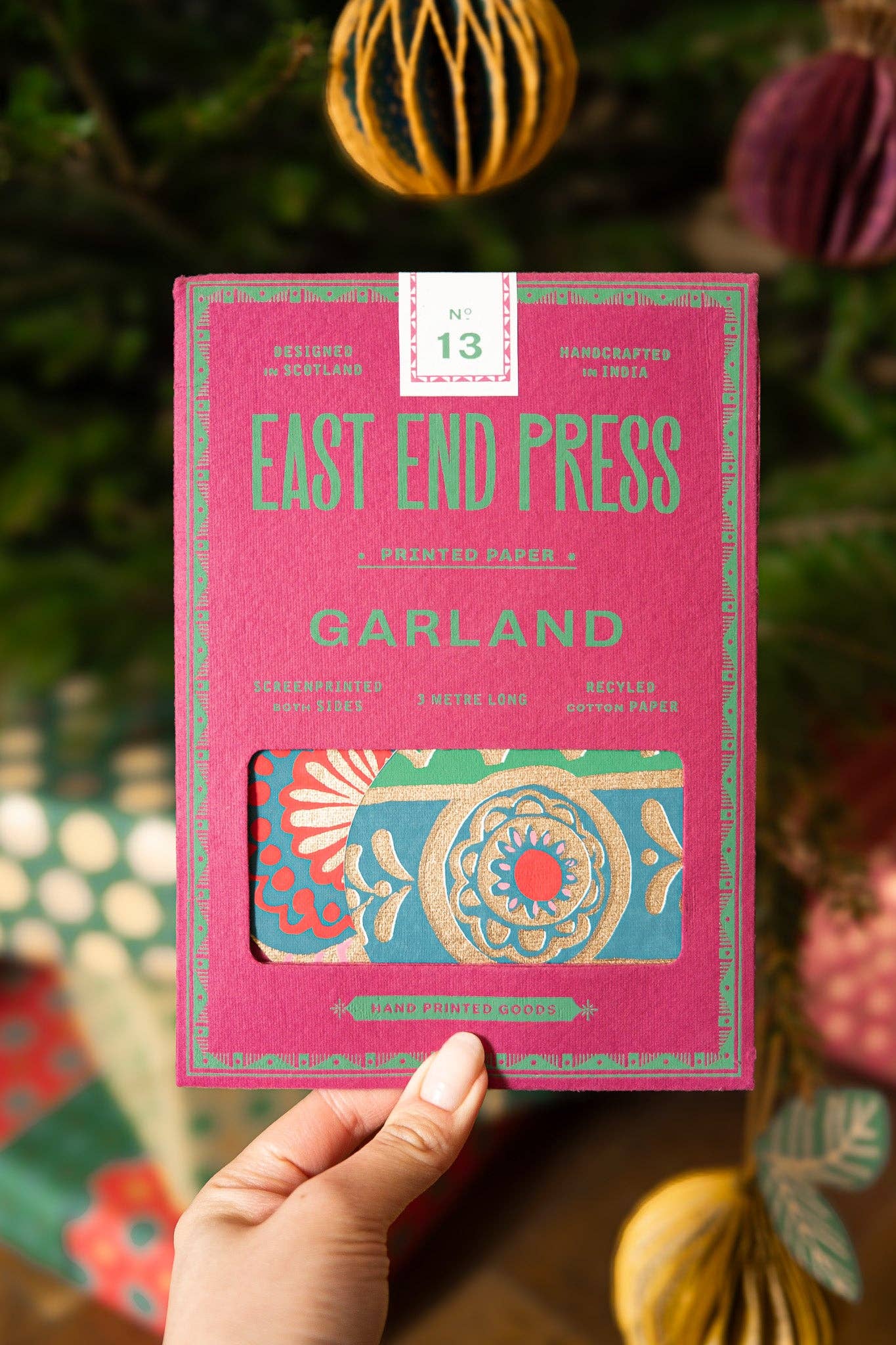 This bauble garland has ten vintage glass-inspired ornaments spread along the three-metre length. Screen printed by hand on both sides by talented artisans in Jaipur & sustainably made from recycled materials