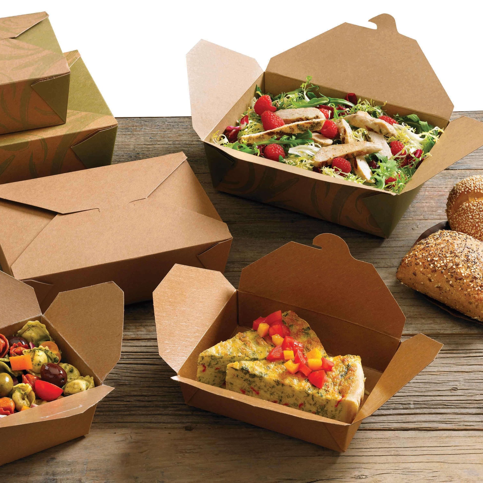 Made from 100% recycled paperboard, each package has a poly liner for leak and grease resistance and can hold all types of food whether it is hot, cold, wet or dry.