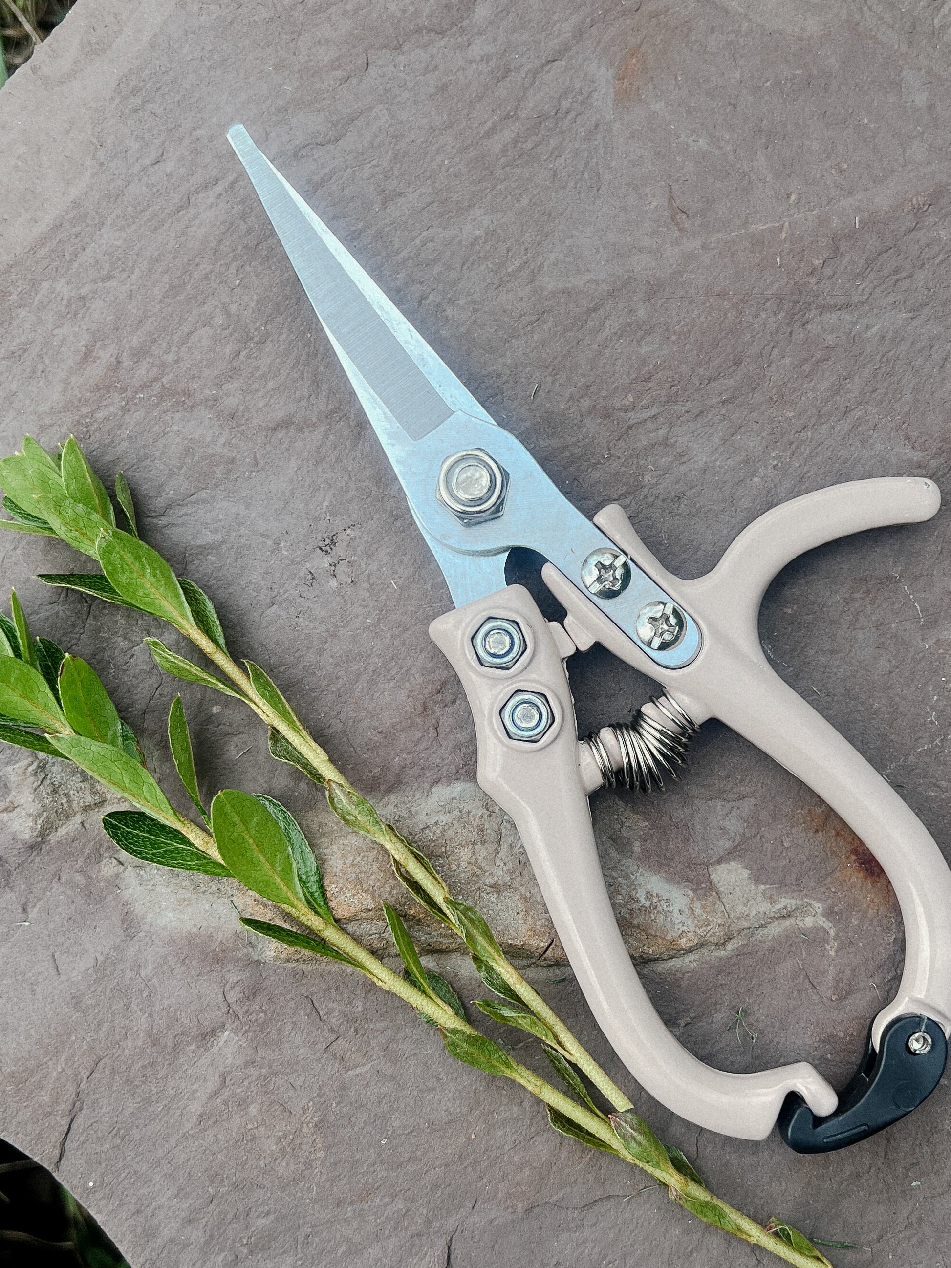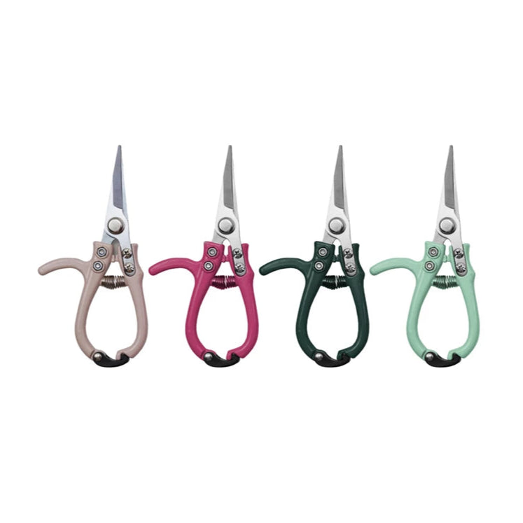 Care for your plant friends with these handy pruning shears. Durable carbon steel makes for a sharp, exacting cut and long life for your tools. Enameled handles are available in four hues.