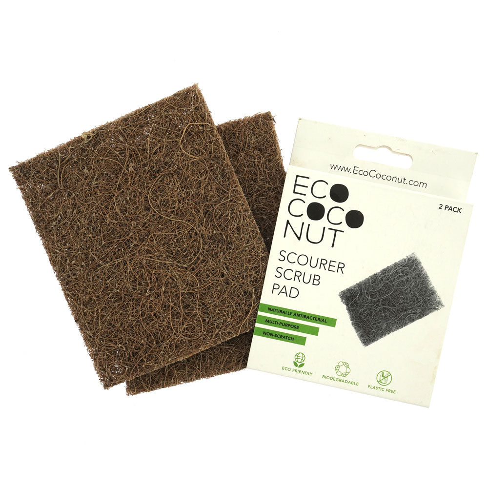 100% plastic-free coconut scrub pads. Safe on non-stick fry pans. Non-scratch on all materials; Excluding Plastic materials
