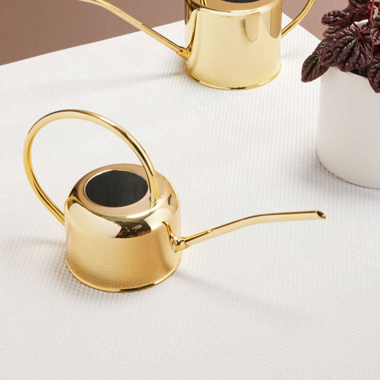 Both beautifully decorative, chic & classically functional, the Henri Watering Can is crafted from galvanized steel with a gold finish, sloped upper edge & round handle.