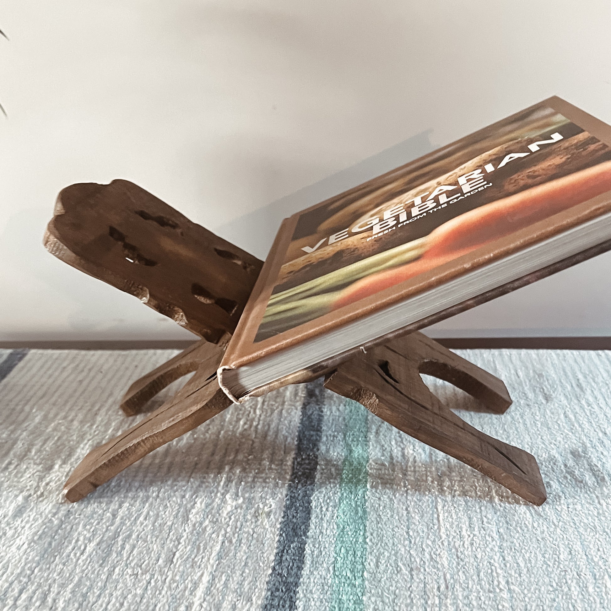 Made in India from upcycled wood, this stand folds flat for easy storage.